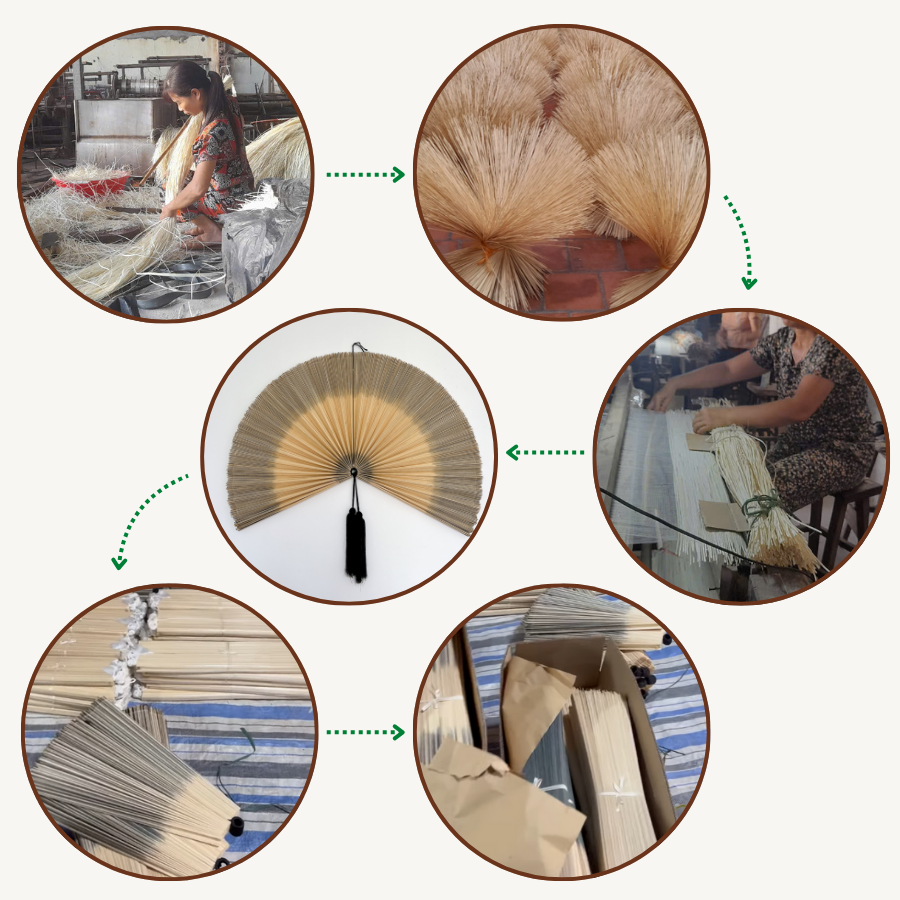 Please note that each fan is handmade, so slight variations in color, weave, and size are natural and make your piece truly unique..