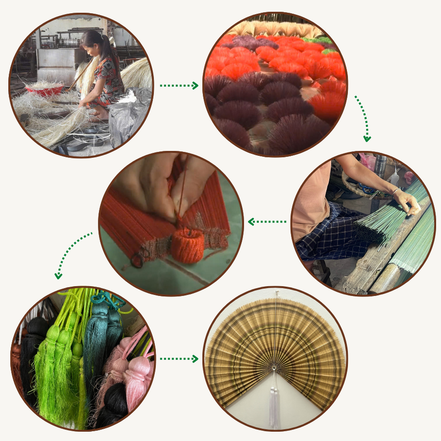 Please note that each Stripe Bamboo Fan is uniquely handmade. Slight variations in color, weave, and size are natural and make your piece truly one-of-a-kind.